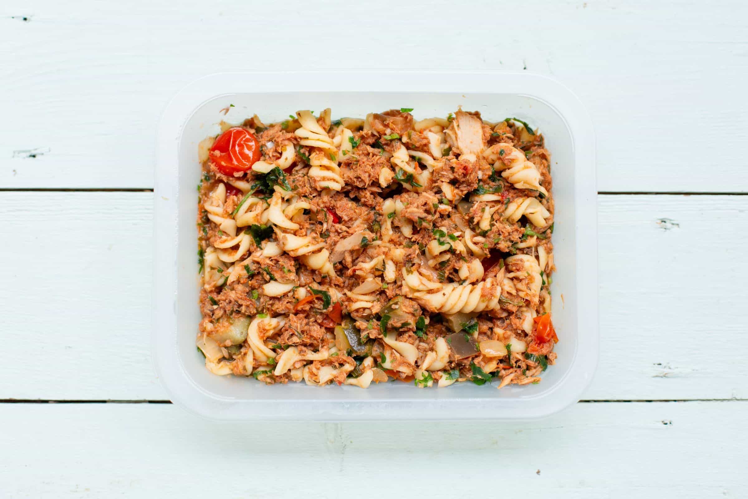 This dish is made with a rich sauce of tuna, vegetables and tomatoes, all mixed into spiral noodles. Perfect as a hearty dish on cold nights, or as a refreshing pasta salad on warm days.