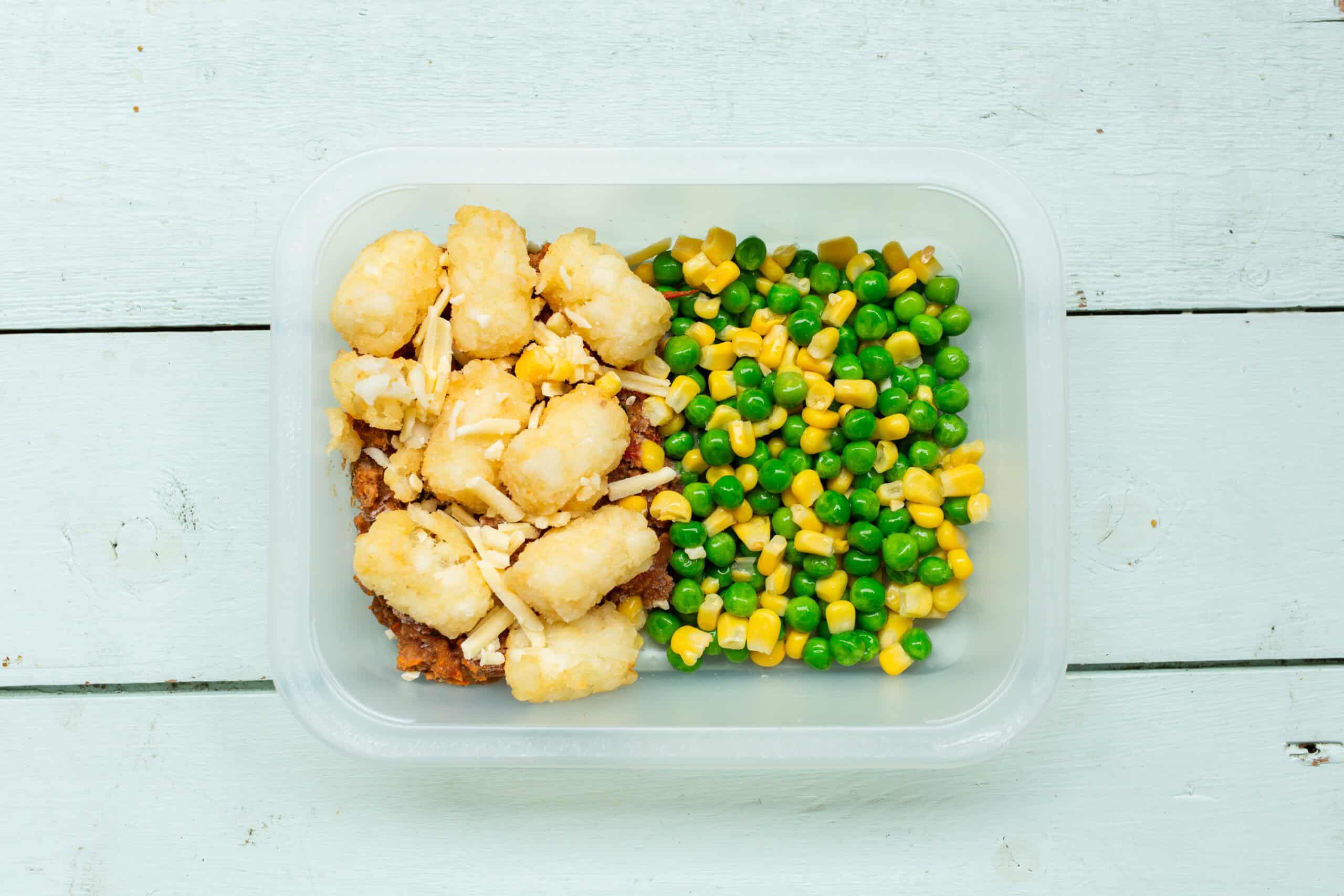 Beef Mince (26%), Potato Gems (25%) (Potato (88%), Canola Oil, Corn Starch, Salt, Dextrose (From Maize)), Peas (19%), Corn (13%), Tomato (4%) (Tomato, Citric Acid (330)), Carrot (3%), Red Capsicum (3%), Onion (2%), Brown Sugar (1.5%), Starch (1%) (Modified Corn), Canola Oil (1%), Shredded Cheddar Cheese (1%) (Pasteurised Milk, Milk, Starter Cultures (Milk), Salt, Enzyme (Non-animal Rennet)], Anticaking Agent (460)), Garlic, Beef Style Flavour (Sea Salt, Maize Maltodextrin, Sugar Yeast Extract, Rice Flour, Dehydrated Vegetables (Onion, Celery, Garlic), Natural Vegetable Flavours, Caramelised Sugar Syrup (Colour), Disodium Guanylate & Inosinate, Canola Oil), Coriander, Salt, Smoky Paprika, Chilli, Liquid Smoke (Water, Hickory Smoke Concentrate).