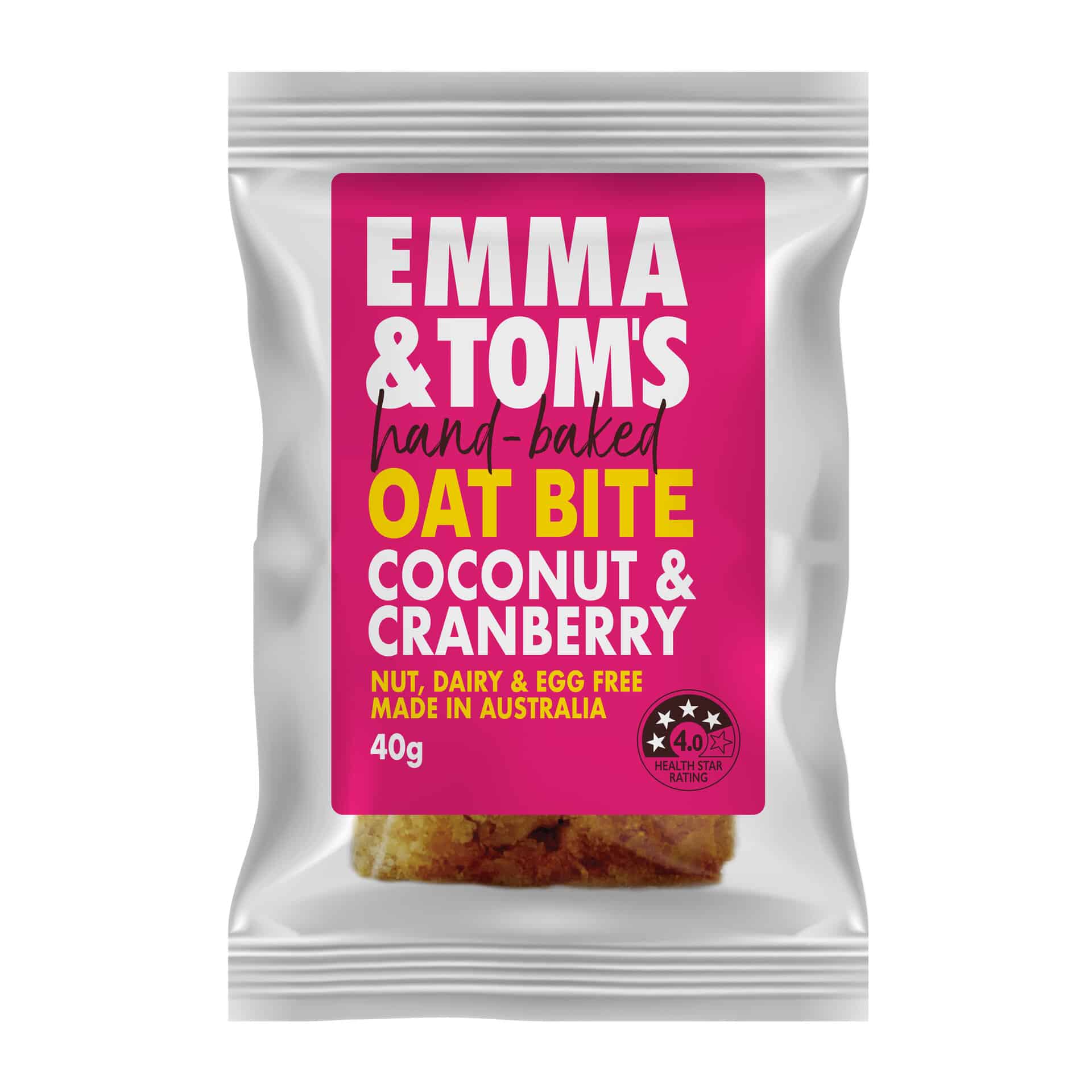 Oats (34%), Wholemeal flour, Coconut (10%), Sultanas, Cranberries (5%), Vegetable Oil, Honey, Soy Protein Powder